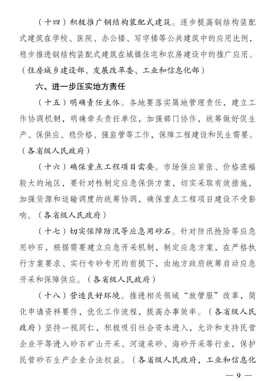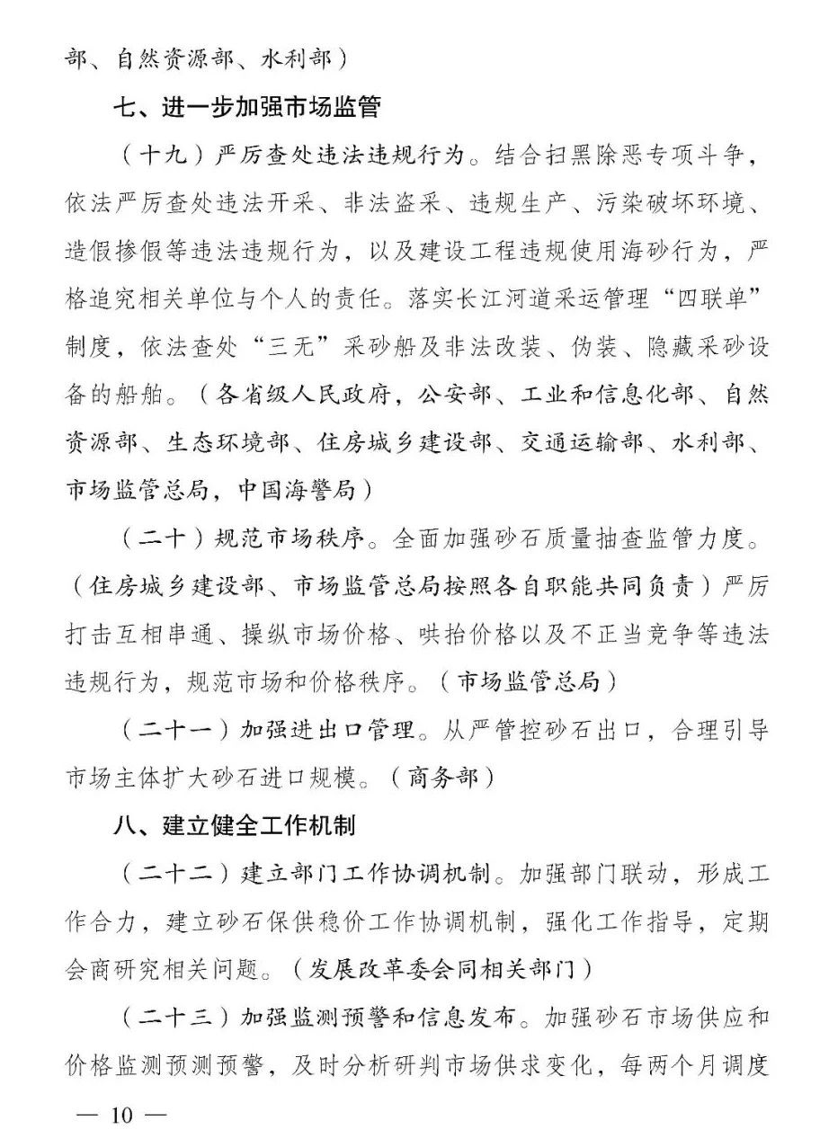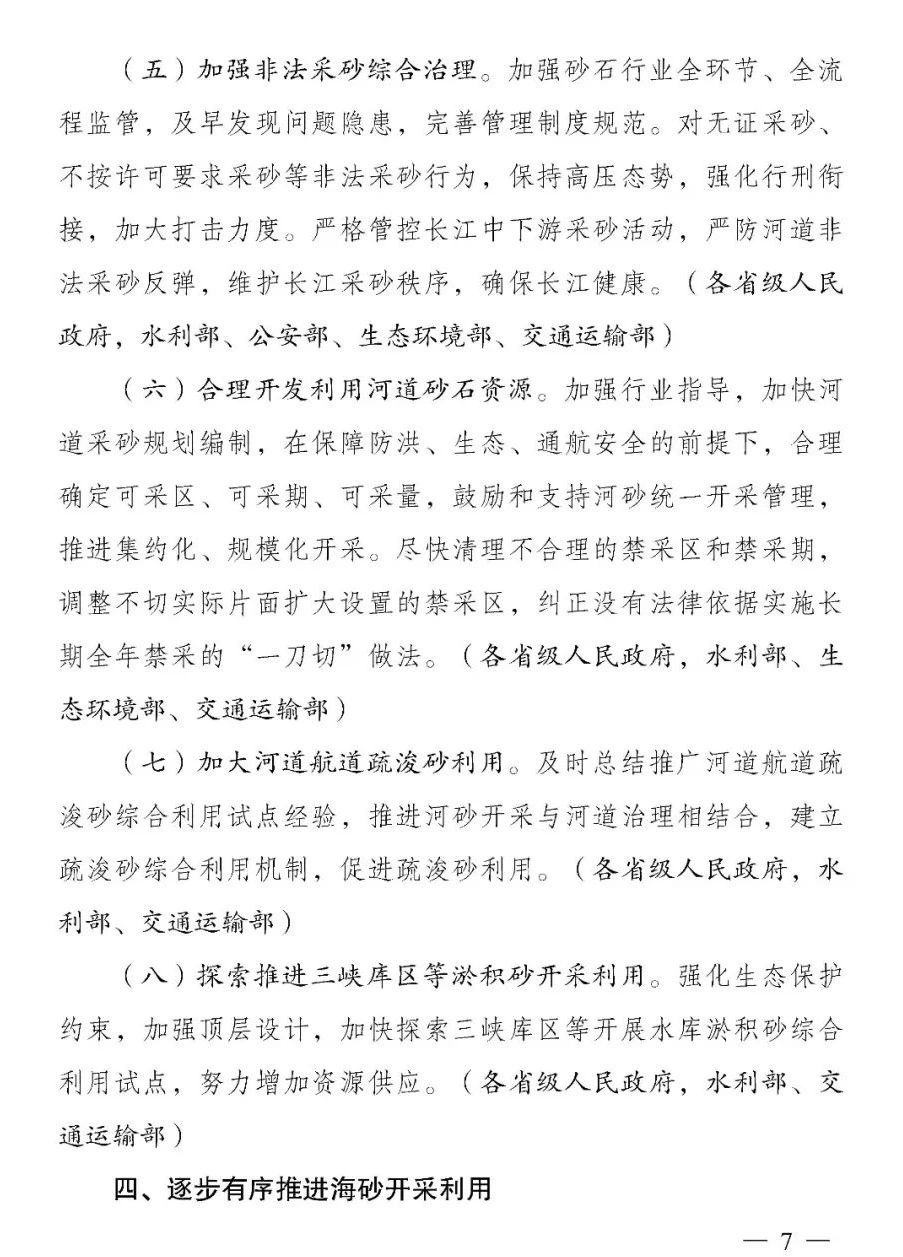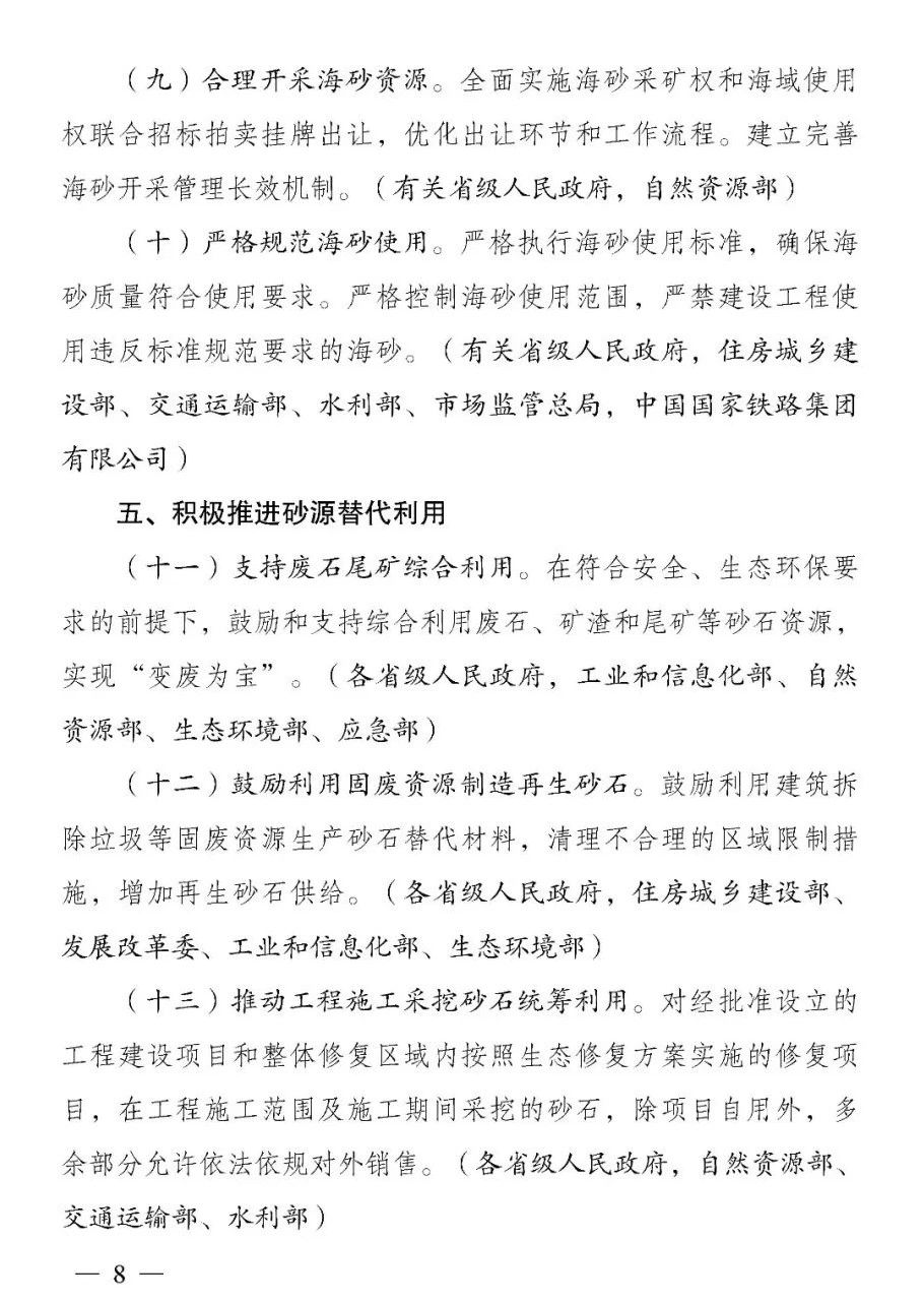 《意见》从总体要求、推动机制砂石产业高质量发展、加强河道采砂综合整治与利用、逐步有序推进海砂开采利用、积极推进砂源替代利用、进一步压实地方责任、进一步加强市场监管、建立健全工作机制等方面进行了系统阐述。