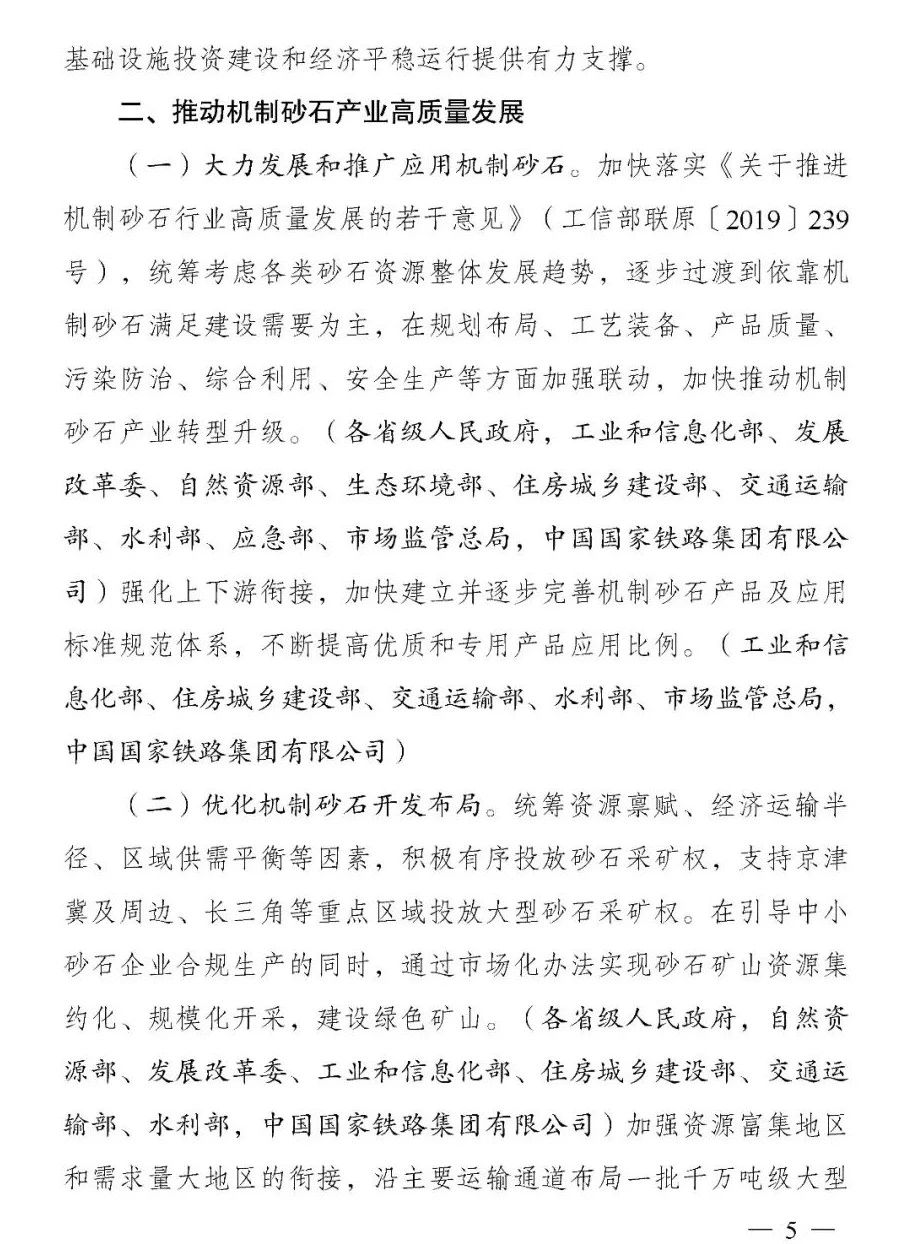 近日,为稳定砂石市场供应、保持价格总体平稳、促进行业健康有序发展,工业和信息化部等十五部门联合印发《关于促进砂石行业健康有序发展的指导意见》(以下简称《意见》)。